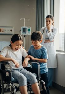 “Si Valeria ang special assistant ko,” biro ni Mateo. Alam niya kung ano ang pakiramdam na hindi siya makalakad, kaya naiintindihan niya ang iba pang maliliit na pasyente. Sa isang espesyal na hapon, 5 taon matapos dumating si Mateo sa ospital, nagtipon ang buong pamilya upang ipagdiwang ang ikasampung kaarawan ni Valeria. Ang batang babae na