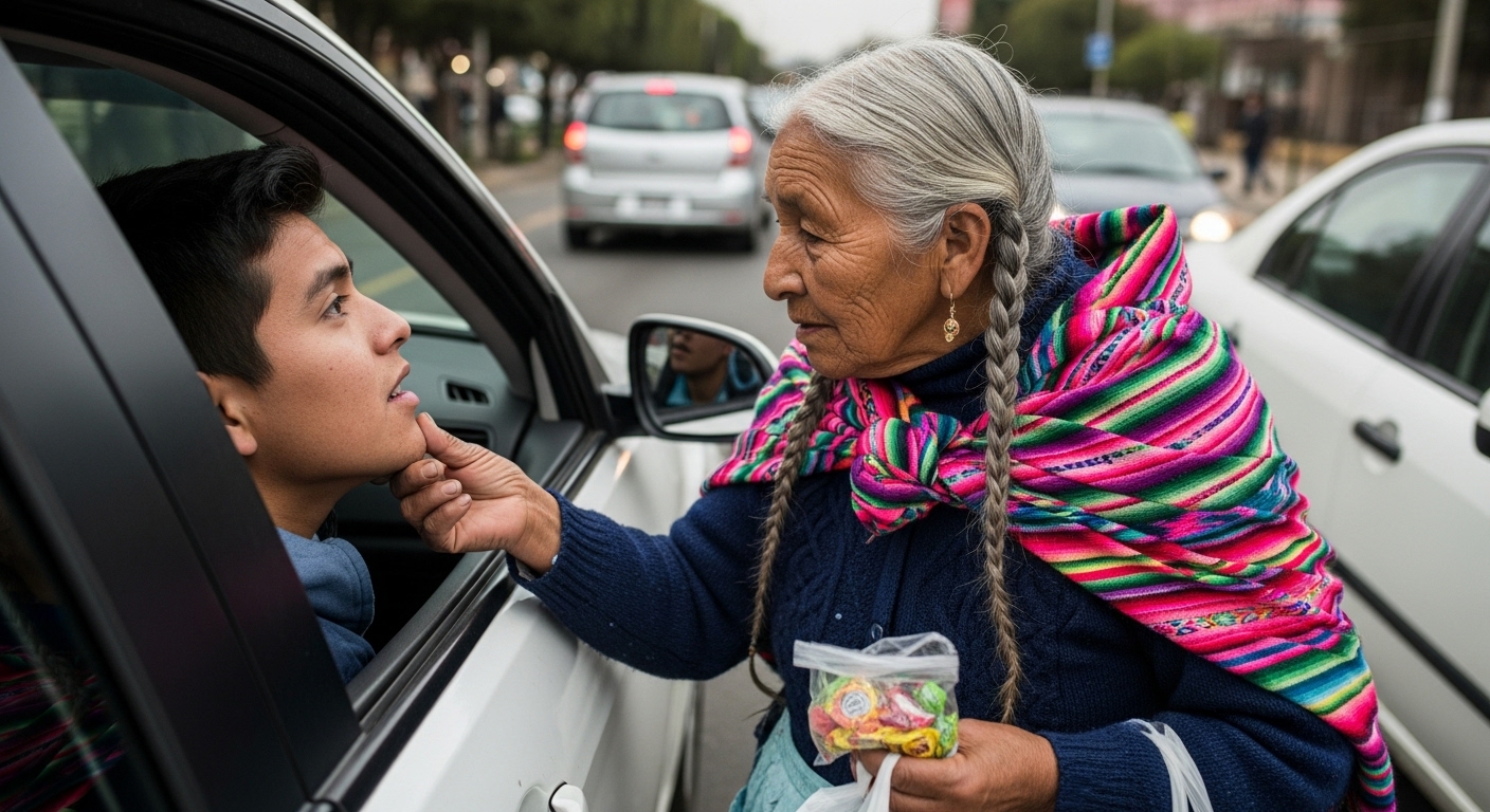 Sumasakit ang kanyang likod dahil sa pagdadala ng mabigat na bag at ang araw ng Agosto ay tumama sa kanya nang direkta sa kanyang kulubot na mukha. “Birhen ng Guadalupe,” bulong niya habang hinihintay ang ilaw ng trapiko sa reporma. Bigyan mo ako ng lakas para sa isa pang araw at kung ang aking maliit na anak na lalaki ay gumaling, saan man siya naroroon, protektahan siya ng iyong sagradong balabal. Ang tadhana, mga kaibigan ko, ay perpektong nai-time ang sandali kung kailan magkikita ang dalawang nawasak na kaluluwa na ito sa iisang ilaw ng trapiko.