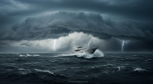 Ang payapa at maaliwalas na umaga ay biglang nagbago. Nang walang pasabi, ang tila walang katapusang asul na kalangitan ay unti-unting nilamon ng makakapal, maitim na ulap. Ang simoy ng hangin na kanina’y mapaglaro ay nagiging malakas at malamig na ihip, na nagpapahiwatig ng isang hindi inaasahang pagbabago. Mabilis na nag-iba ang kulay ng karagatan; mula sa mapayapang asul, ito ay naging madilim at nagngangalit na kulay-abo. Ang mga alon na dating banayad na humahaplos sa yate ay ngayon ay nagiging dambuhala atmarahas na humahampas sa katawan ng sasakyang-dagat. Nagulantang si Mark. Mabilis niyang naramdaman ang pagtaas ng presyon sa hangin, at ang amoy ng asinsa hangin ay tila mas matindi. Ang tunog ng banayad na alon ay napalitan ng umuugong na ingay, kasabay ng malakas na paghampas ng yate sa bawat pagtaas at pagbaba ng mga naglalakihang alon. Walang abiso, walang babala; ang bagyo ay dumating na may buong bagsik, na tila isang nagagalit na nilalang na handang lamunin ang lahat ng nasa kanyang daraanan. Ang bawat segundo ay tila isang oras na lumilipas, habang ang kapayapaan ay tuluyang nawala, napalitan ng matinding kaguluhan at takot.
