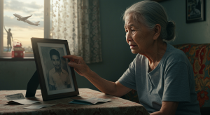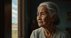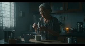 Sa dilim pa ng umaga, gising na si Aling Nena. Humigit-kumulang 60 anyos, payat, nakadamit ng kanyang simpleng daster, tahimik siyang naglalakad sa sala, ang kanyang mga yapak ay halos hindi marinig. Ang bahay aytahimik, ngunit sa puso niya, ang ingay ng pag-aalala ay malakas. Ang mga kunot sa kanyang noo ay parang mga mapa ng mga labanang pinagdaanan, at ang kanyang mga mata,puno ng pag-aalala, ay naghahanap ng kasagutan sa mga tanong na hindi masabi. Sa kusina, habang nagtitimpla ng kape, naririnig niya ang mga tunog ng mundongunti-unting nagigising – ang tahol ng aso sa malayo, ang businang nagmamadali, ang banayad na simoy ng hangin na nagdadala ng amoy ng lupa. Sa bawat paghalo niya sa kape, tila binabalot siya ng isang kakaibang kalungkutan.