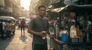 Ang kanyang panganay na anak, si Junjun, humigit-kumulang 30 anyos, matipuno ngunit may bakas ng pagod sa mukha. Nakasuot ng simpleng t-shirt at shorts, ngunit ang bigat ng mundoay nakakapit sa kanyang mga balikat. Siya ang inaasahan, ang tagapagtaguyod, ang pumalit sa papel ng kanyang ama na maagang pumanaw. Araw-araw, sinusuongniya ang init ng Maynila, naghahanap ng hanapbuhay na halos hindi sapat upang matustusan ang pang-araw-araw nilang pangangailangan. Ang pandemya ay lalongnagpalala ng kanilang sitwasyon, pinagkaitan siya ng permanenteng trabaho, at ngayon, nagsisikap siyang magtinda ng kape sa kalye. Ang bawat sentimong kinikita niyaay hindi lamang para sa kanyang asawa at mga anak, kundi para rin sa kanyang ina at mga nakababatang kapatid.