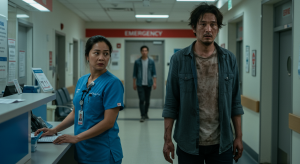Biglang, isang anino ang gumalaw sa gilid ng kanyang paningin. Isang matangkad na pigura ang lumitaw sa lobby, ang kanyang mukha ay balisa at ang kanyang pananamit ay gusot. Hindi ito mukhang pasyente, ni bisita. Parang galing sa lansangan, gulo ang buhok, at ang kanyang mga mata ay naghahanap ng kung ano. Mabilis na napansin ni Aling Nena ang kanyang kakaibang pagkilos, isang instinct na nabuo sa maramingtaon ng karanasan. Hindi ito ang karaniwan na pagpasok.