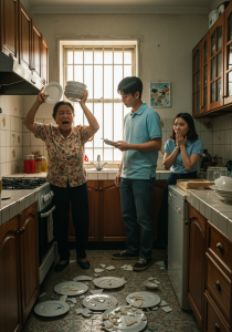 “Chup! It’s embarrassing for a man to be like this! I’m telling you…” – she pointed straight at my face – “If you let my son do any more housework, don’t blame me for finding someone else who knows how to be a wife to replace you!”