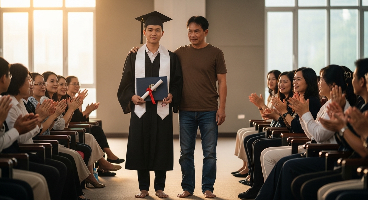 “Son, it’s enough for me to see you standing there. The diploma you’re holding is the shoe I never had. That’s the success that’s greater than anything else I own.”