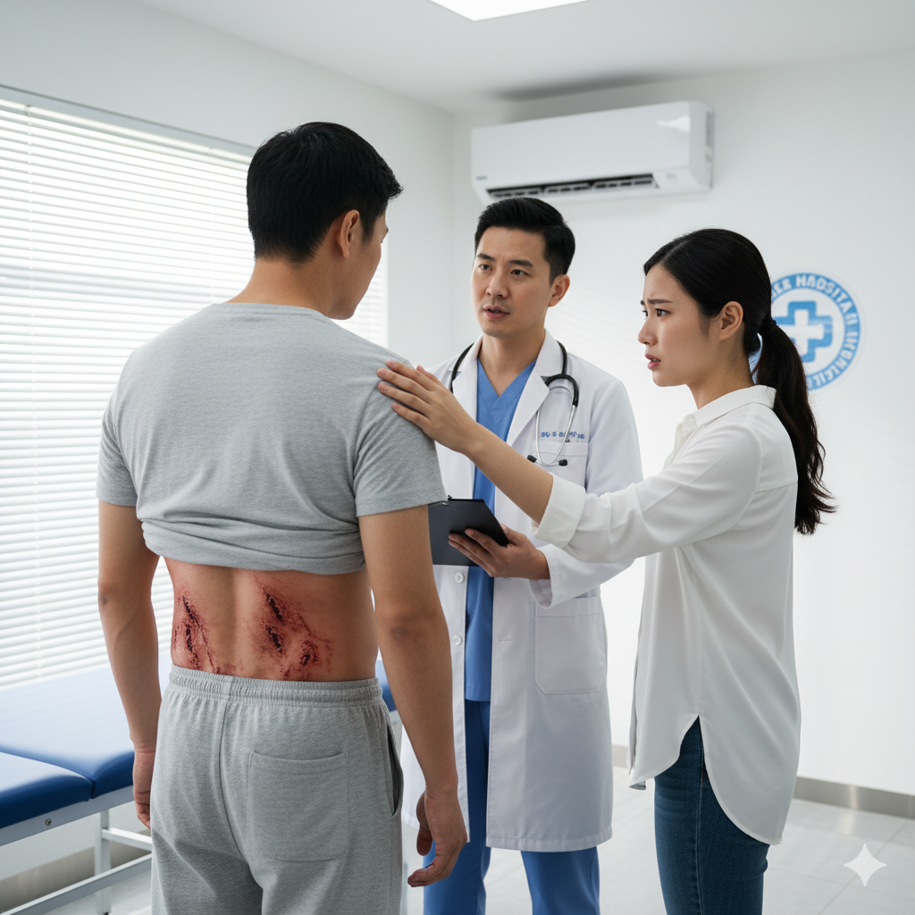 Tumango siya. “Pinaghihinalaan namin na nalantad siya sa isang kemikal na substansiya — posibleng isang bagay na kinakaing unti-unti o nakakairita na direktang inilapat sa kanyang balat. Nagdulot ito ng pagkaantala ng reaksyon. Dinala mo siya sa tamang oras.”